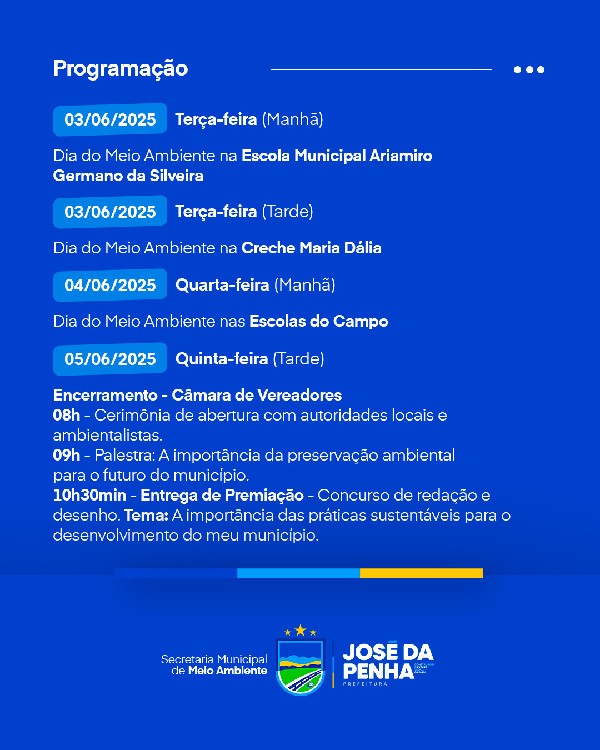A Secretaria de Meio Ambiente e Defesa Civil da Prefeitura José da Penha convida toda a população a participar das ações em prol da preservação do nosso planeta.