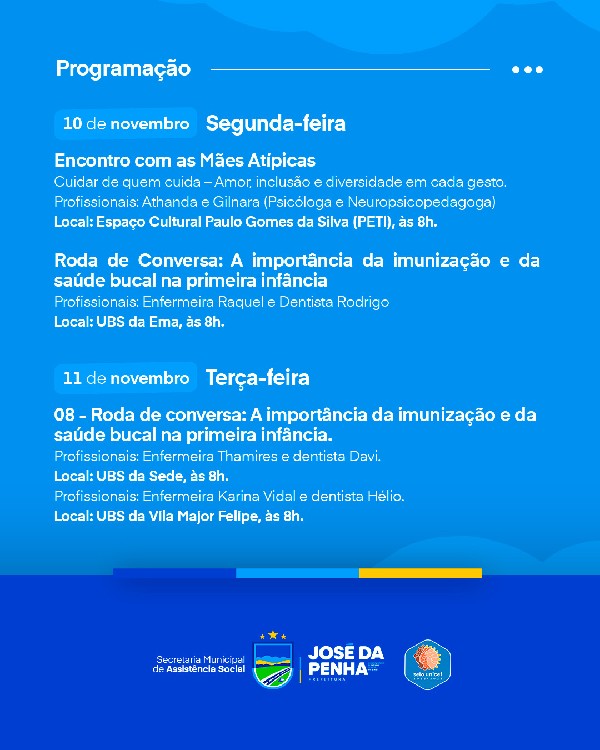 De 10 a 13 de novembro, José da Penha se une em prol da primeira infância com ações especiais, rodas de conversa, contação de histórias e muito aprendizado!