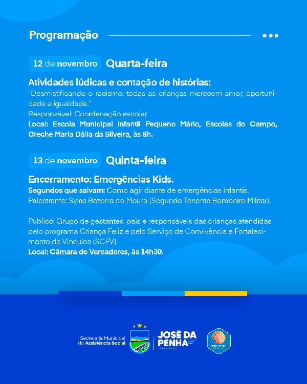 De 10 a 13 de novembro, José da Penha se une em prol da primeira infância com ações especiais, rodas de conversa, contação de histórias e muito aprendizado!